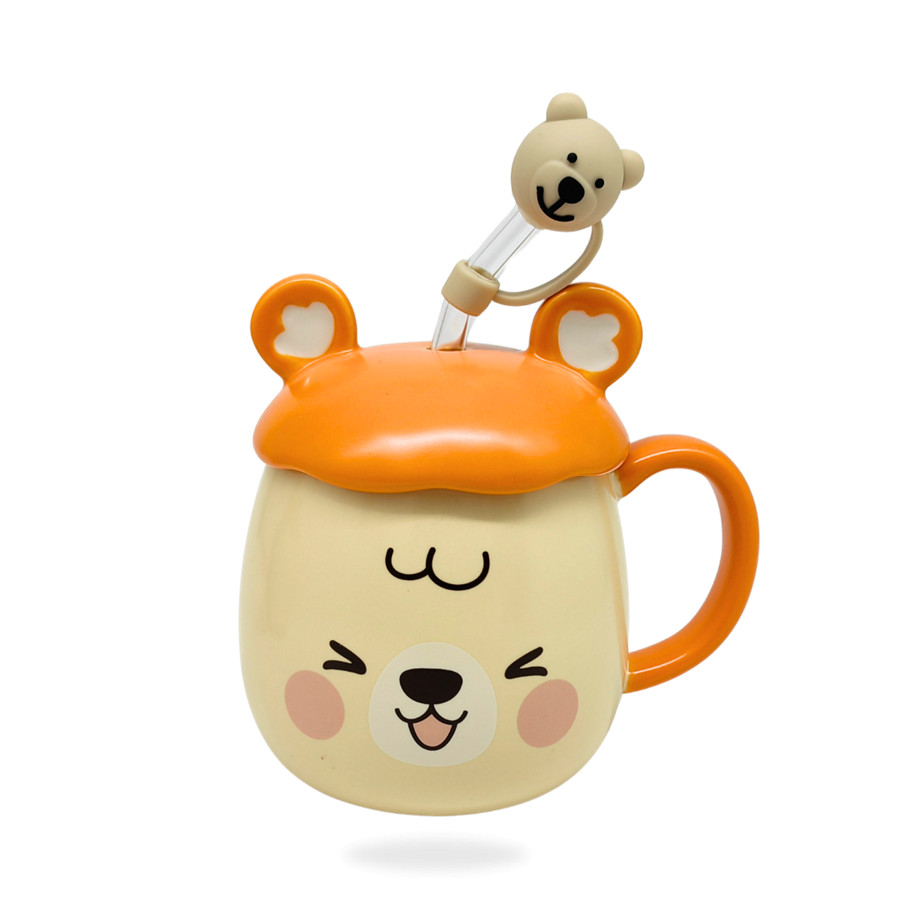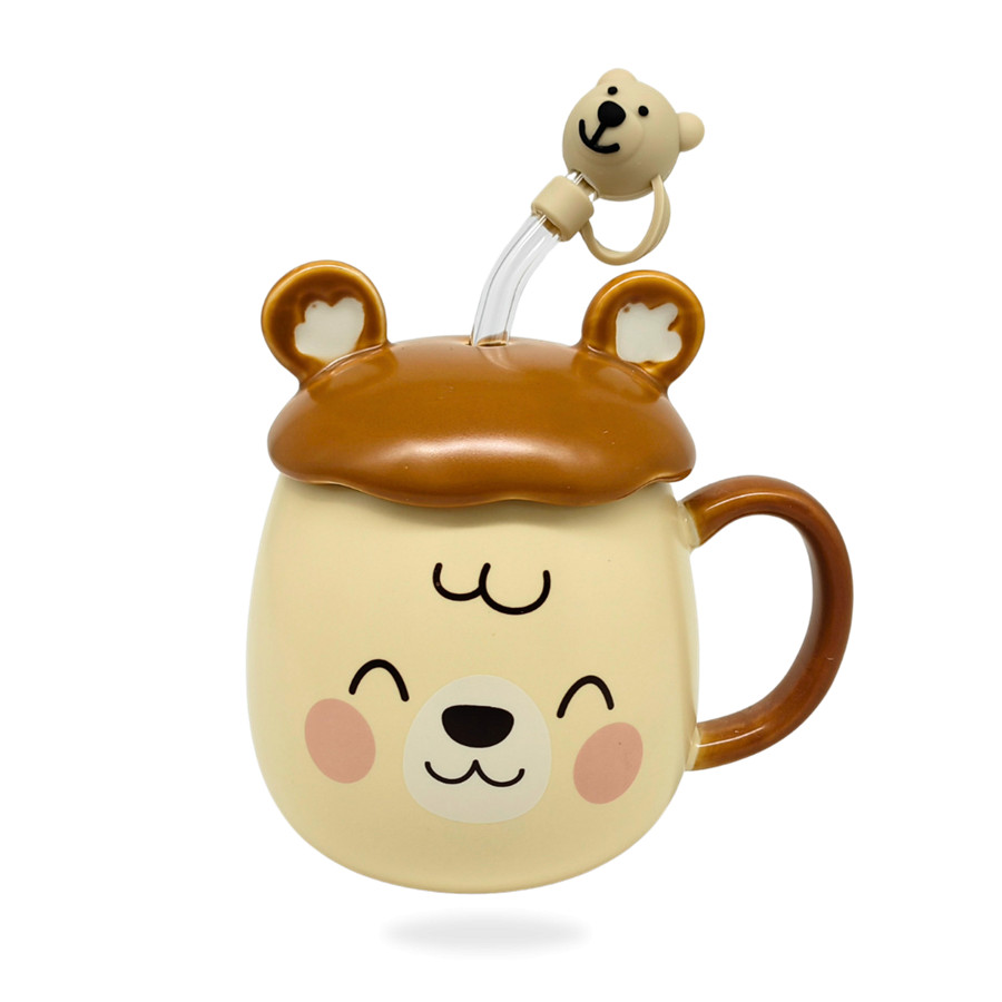 Bögre kerámia + tető + szívószál macis 450ml LU-14