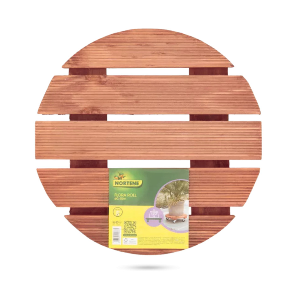 Gurulós virágalátét Nort Flora kör lakozott keményfa 30cm