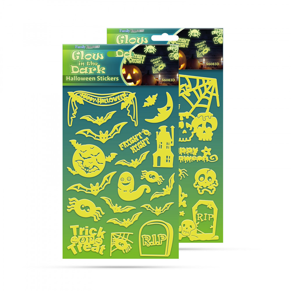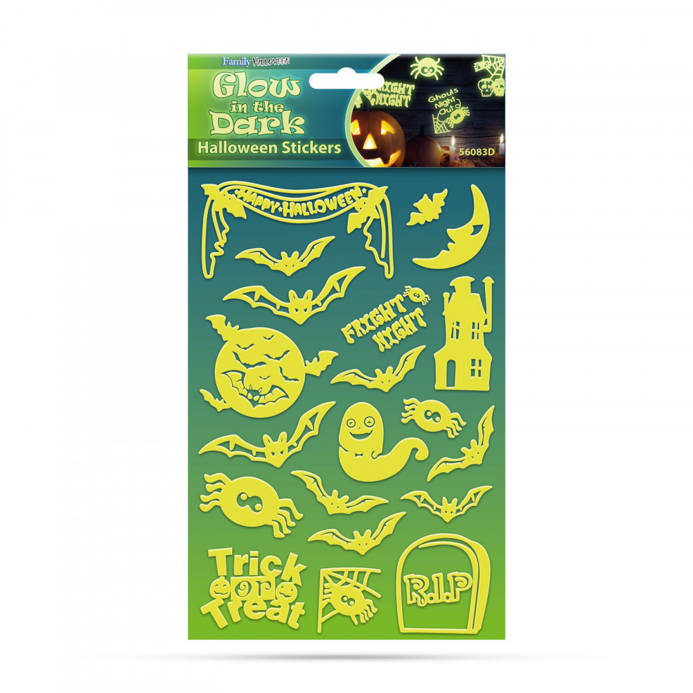 Egyre nagyobb trendnek örvend a Halloween ünneplése. Az emberek világító tököt faragnak, ijesztő sminket készítenek maguknak és nem maradhat el a lakások, közösségi helyiségek dekorálása sem! Rögzítse a fluoreszkáló matricát a falra vagy a mennyezetre. A matricák világítanak a sötétben, így kiváló halloween-i hangulatot teremtenek. Helyezze a matricát legalább egy percig fényforrás elé, mellyel 1 órás foszforeszkálás érhető el. A foszforeszkáló matricákon alkalmazott speciális festék tárolja a fényt. 3 éven aluli gyermekeknek nem ajánlott.