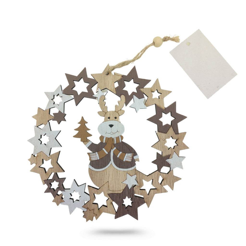 Kar. ajtódísz fából rénszarvasos kör 15,5cm AT24-815023