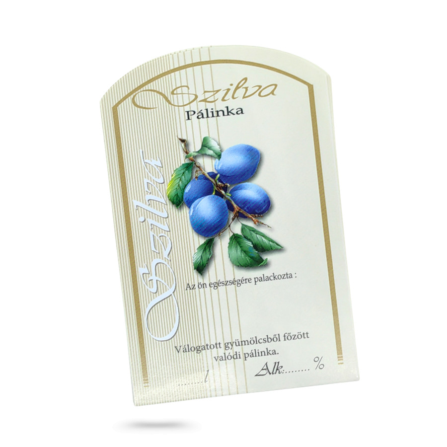 Szilva pálinka feliratú/mintás öntapadós címke pálinkás üvegekhez. Megfelelő választás esküvőre, névnapra, születésnapra, esetleg szimplán, ha csak a házi készítésű pálinkánkat szeretnénk kipalackozni és felcímkézve rendszerezni.