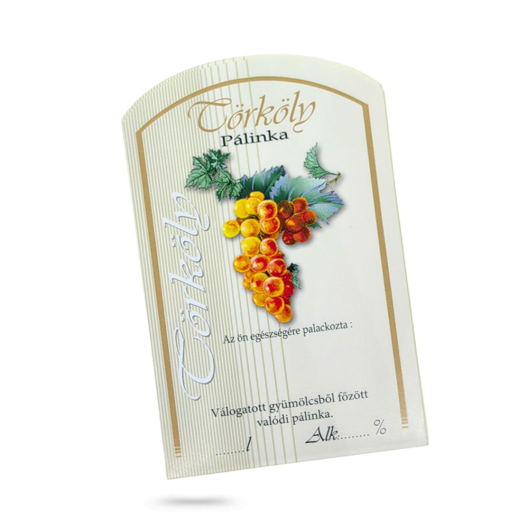 Törköly pálinka feliratú/mintás öntapadós címke pálinkás üvegekhez. Megfelelő választás esküvőre, névnapra, születésnapra, esetleg szimplán, ha csak a házi készítésű pálinkánkat szeretnénk kipalackozni és felcímkézve rendszerezni.