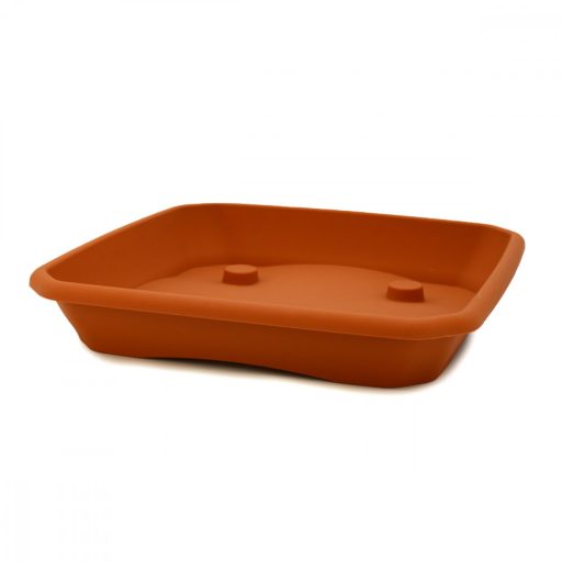 A terrakotta színű 17,5x17,5 cm- es virágcserép alátét tartós, erős műanyagból készült, mely felfogja a locsoláskor kifolyó vizet.